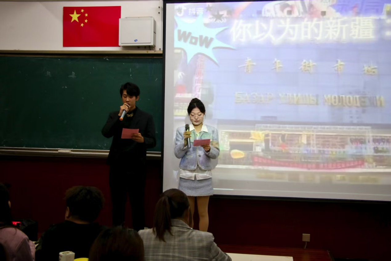 除了精彩的表演,联欢会还设置了丰富的互动环节。传统猜灯谜活动让新生们在智慧的较量中感受传统文化的魅力,而“丝路传情”游戏则让同学们在并肩配合中增进了解、加深友谊。
