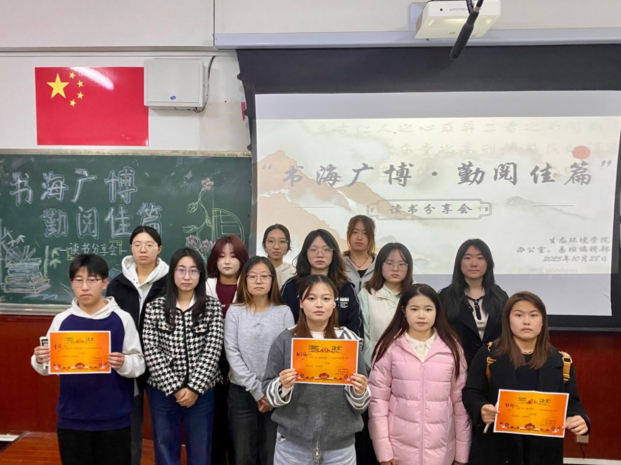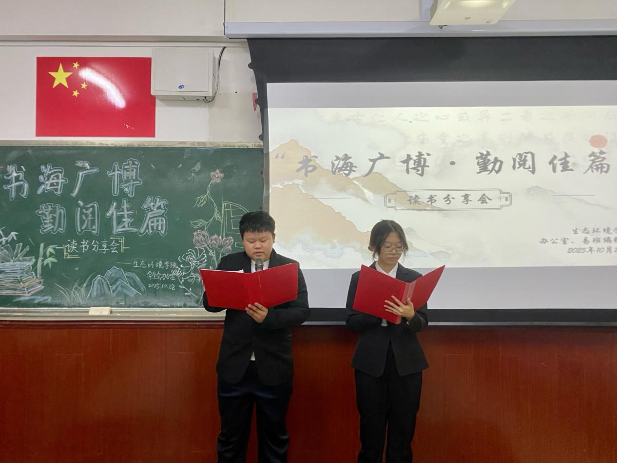 为激发学生深度阅读热情、让书香浸润校园文化,2025年10月28日,生态环境学院在博东605举办"书海广博·勤阅佳篇"读书分享会,引导学生走出碎片化阅读误区,在深度阅读中汲取知识养分、提升人文素养。