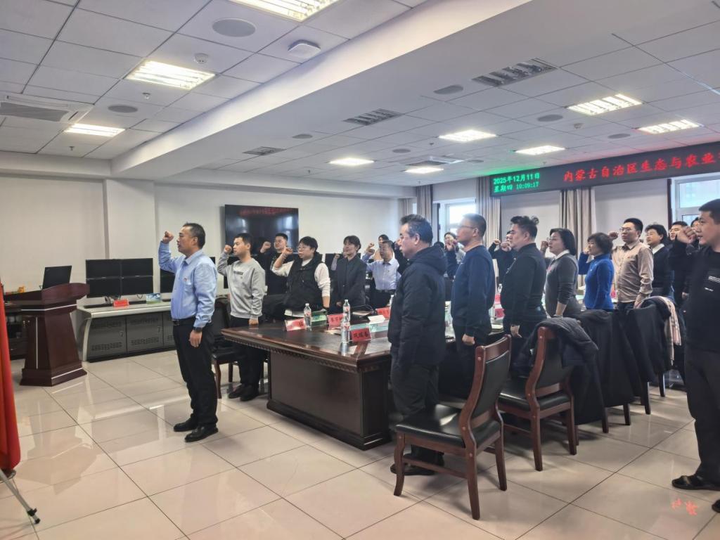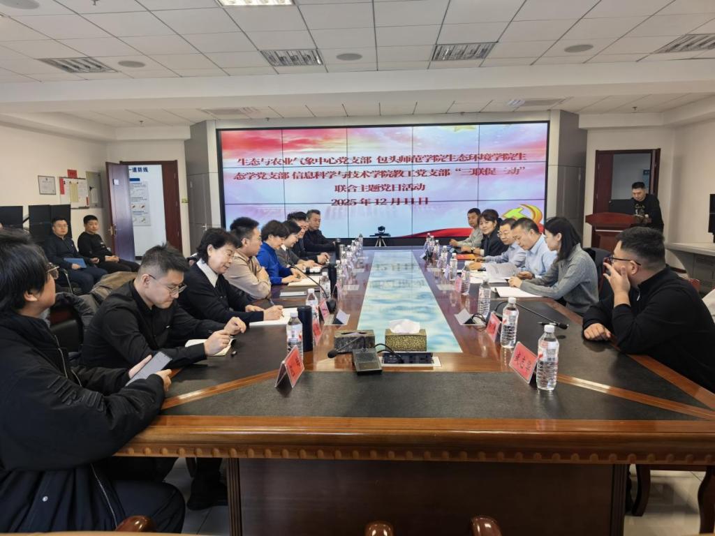 为深入学习贯彻自治区“五大任务”部署要求,深化党建与业务融合发展,搭建高校与行业部门协同合作平台,12月11日上午,生态环境学院生态学教工党支部联合信息科学与技术学院教工党支部与内蒙古自治区生态与农业气象中心党支部联合开展“党建联建聚合力 黄河生态护安澜 气象农科助振兴”的主题党日活动。生态环境学院党总支书记朱丽、副院长高健、副书记刘一峰、黄河几字弯生态研究院常务副院长孙海莲、信息科学与技术学院院长陈静及党员教师代表参加活动,内蒙自治区生态与农业气象中心主任李兴华,纪检书记邓晓东、正高级研究员娜日苏及党员代表参加活动,共同筑牢思想根基、共探合作路径。