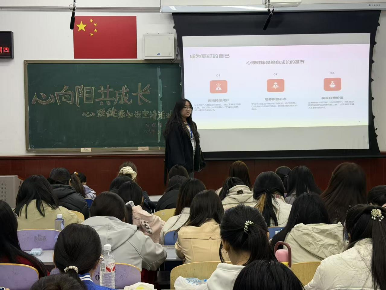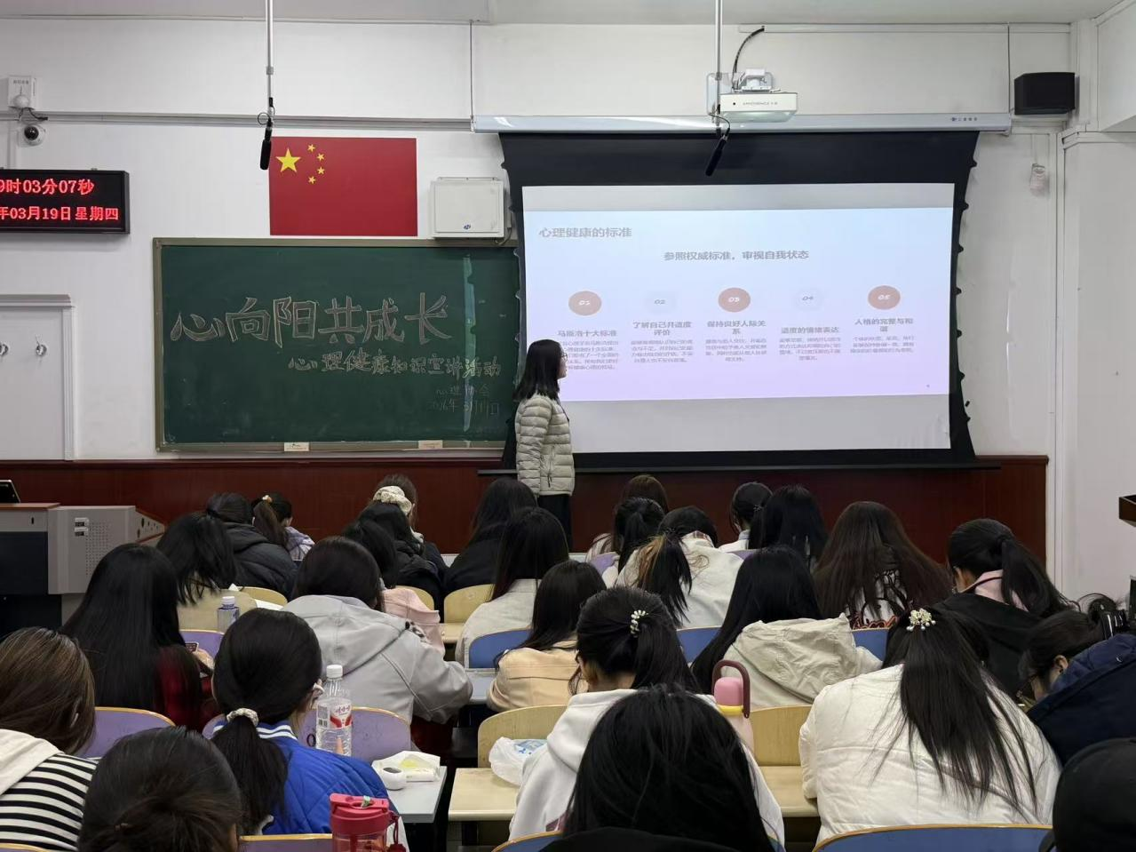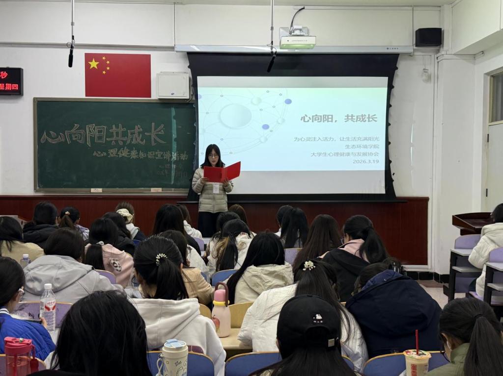 为进一步宣传心理健康知识,提升学生心理健康素养,引导同学们以积极心态面对生活,近日,生态环境学院联合大学生心理发展协会开展以“心向阳,共成长”为主题的心理健康宣讲活动,为同学们的心灵注入温暖与力量。