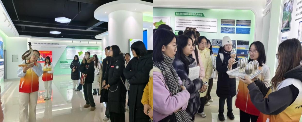 在核心展示与互动环节,活动充分借住鸟类标本、详实的图文展板及模型等载体,让科普更具直观性。讲解员通过展示湿地鸟类的不同食物样本,生动阐释了黄河生态系统的物质循环与能量流动;通过对比不同鸟类的蛋、巢穴以及适应其生活习性进化出的各异爪形标本,揭示鸟类对环境的适应性与生物多样性的奇妙。精心设置的“繁殖岛模型”演示,直观呈现了适宜栖息地对鸟类保护的重要性。